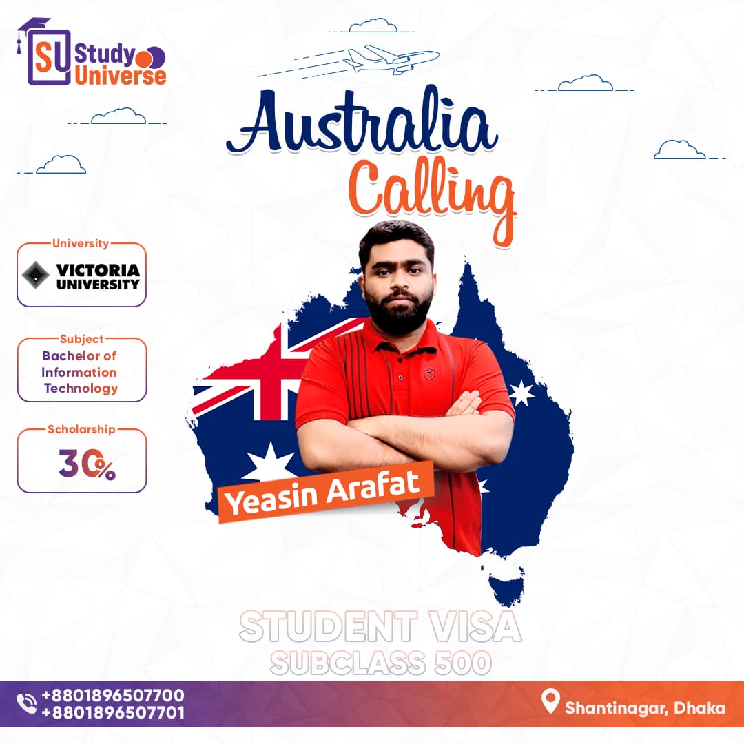 "Australia would have remained a dream for me if I hadn't received help from Study Universe. I had visited many consultancy firms in Bangladesh, but everyone told me that I couldn't get admission with my low CGPA. However, Study Universe motivated me and showed me the correct pathway to make my dream come true. Finally, I have received the Australian visa along with the English Medium of Instruction (MOI) certificate."